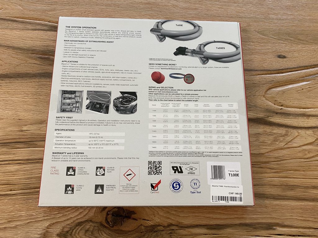 The model I installed (T100E) costs CHF 150 (around USD 150) in Switzerland, maybe it’s a bit more expensive than other solutions, but those other solutions I analyzed were leaving residues, ruining all my equipment in case of a fire, so the cost would be even higher.