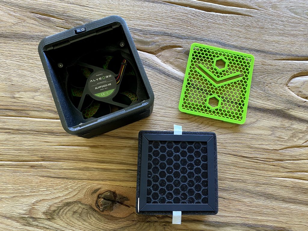 On Alveo’s website they state the that the filter is especially designed for 3D Printers, with a high efficiency to capture nanoparticles. Offering a 99.95% filtering protection reducing significantly odors. The replaceable part of the filter lasts 3 to 6 months depending on your print volume. Then you can replace just the Carbon+HEPA filter for a new one, costs around 20 Euros.